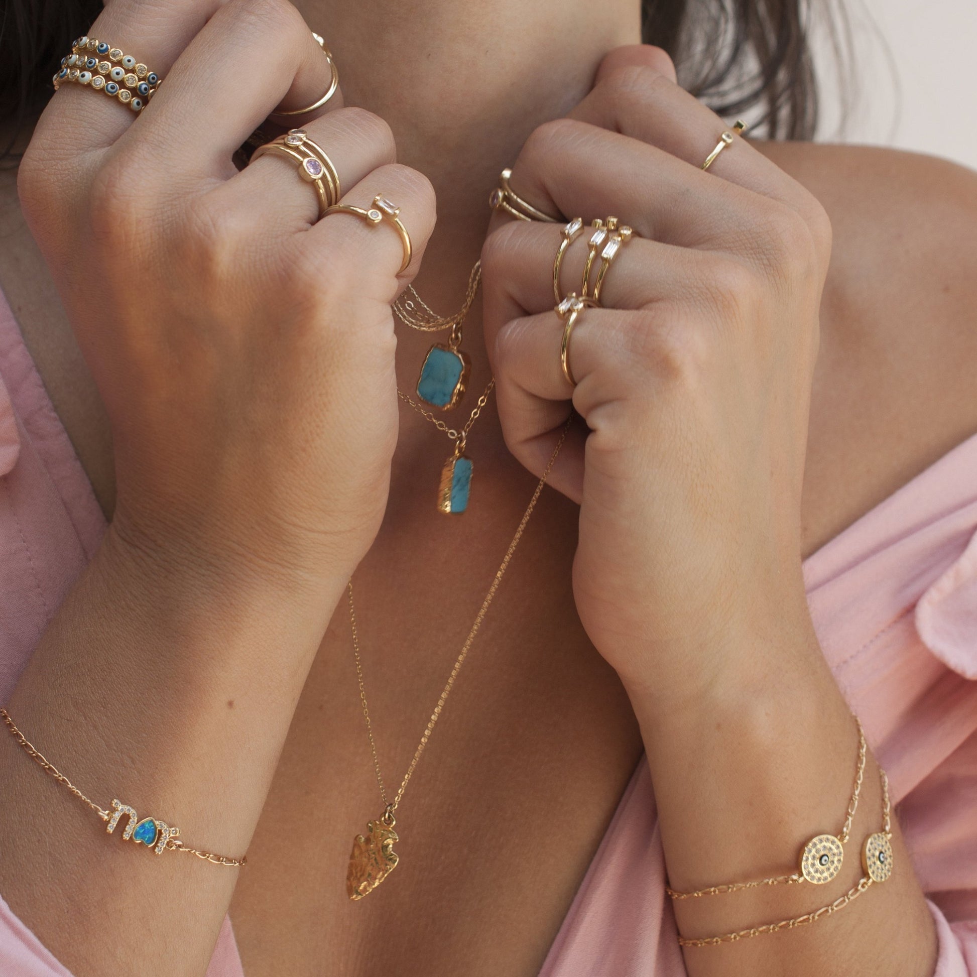 Everyday simplicity meets artisanal beauty. Turquoise necklace with a gold-dipped pendant on a dainty thin chain—an everyday boho-chic piece perfect for layering or wearing solo.