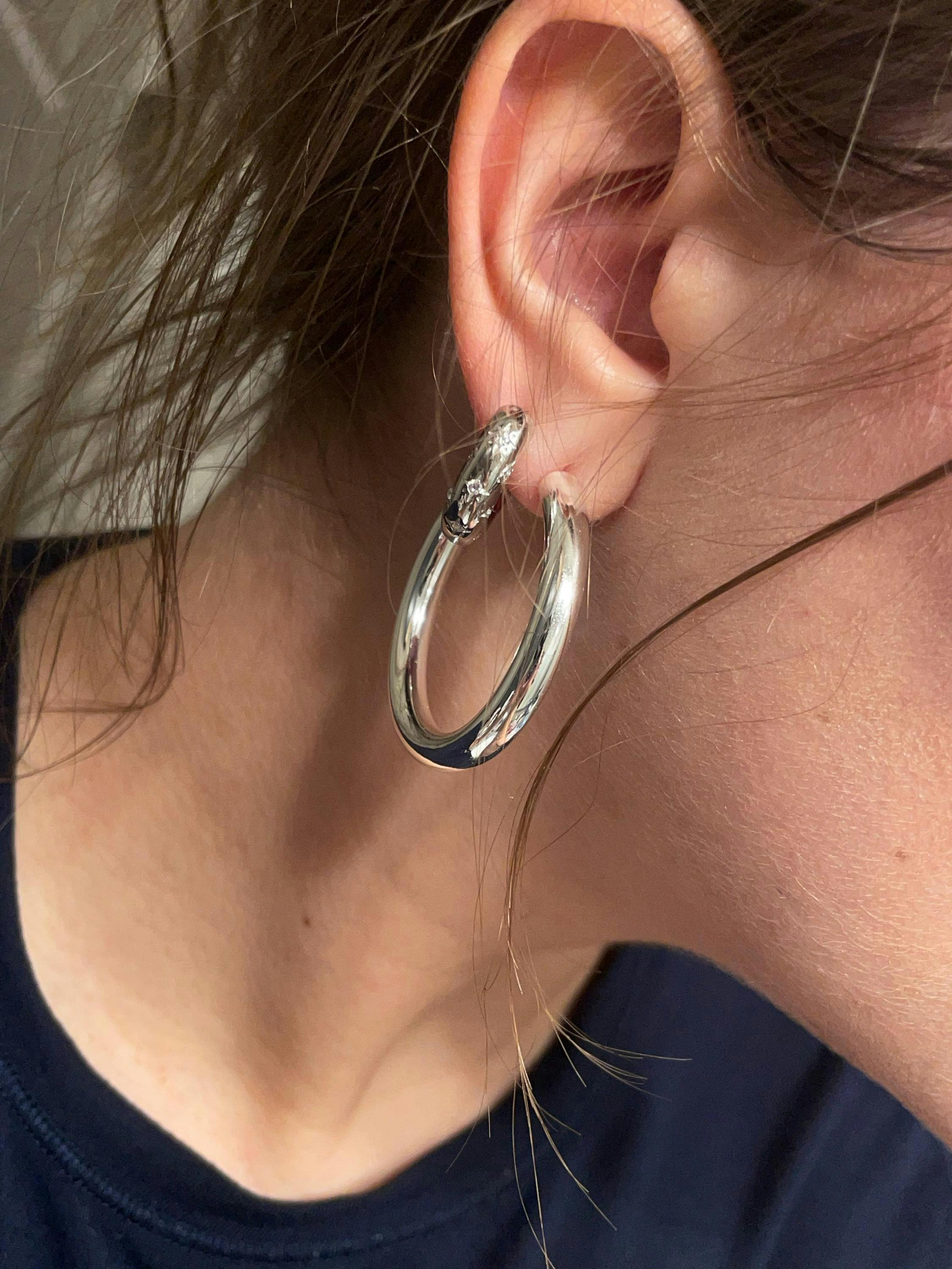 Meet our Cloud Nine Hoops - chunky yet oh-so-light. These sterling silver stunners feature a hollow design that gives you all the bold look with none of the weight. The sleek C-shape and high-polish finish create that perfect statement silver hoops you'll reach for daily.